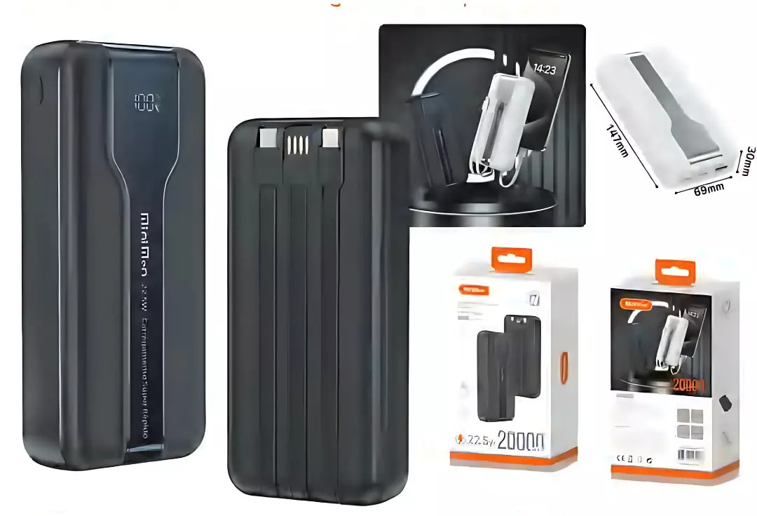 O Power Bank MiniMen MM-CDB309 20000mAh oferece carregamento rápido, seguro e portátil para smartphones, tablets e dispositivos compatíveis. Com tecnologia Power Delivery 20W e Quick Charge 22,5W, garante recargas mais rápidas e eficientes no dia a dia.