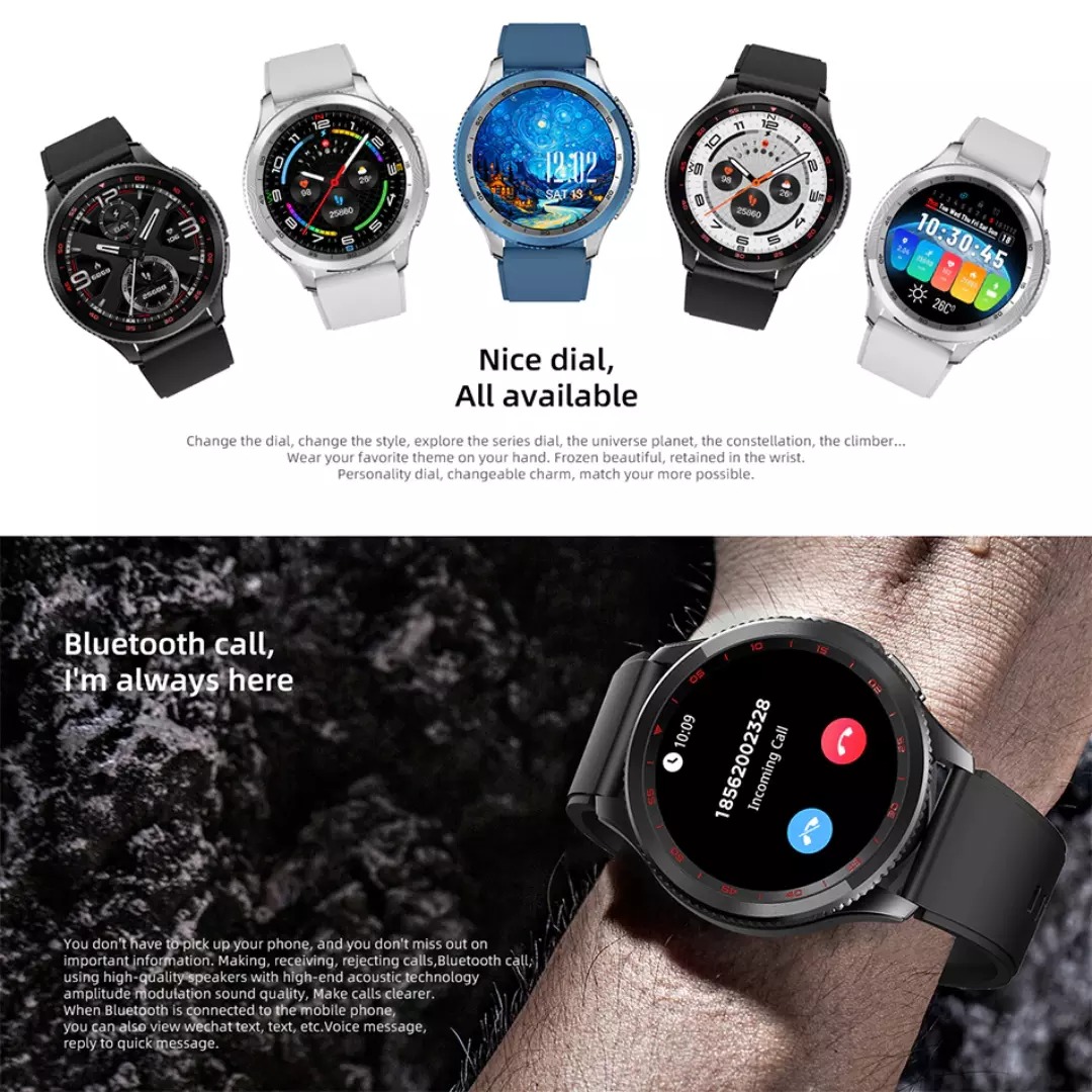 Conectividade Avançada com Bluetooth 5.3: A tecnologia Bluetooth 5.3 de última geração garante uma conexão estável e de baixo consumo com seu smartphone. Atenda e faça chamadas diretamente do relógio, receba notificações de mensagens e redes sociais, controle a reprodução de músicas e até use o controle remoto da câmera para fotos criativas. Tudo com praticidade e discrição.