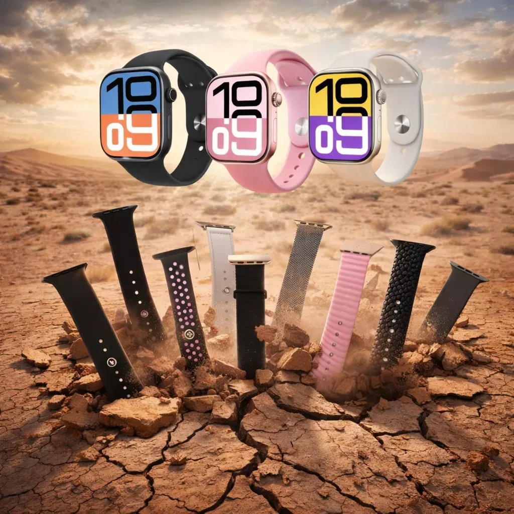 Versatilidade em 7 Estilos: Sua personalidade em cada look. O kit exclusivo com 7 pulseiras intercambiáveis (compatível com 38/40/41mm) permite que você mude do escritório para a academia em segundos.